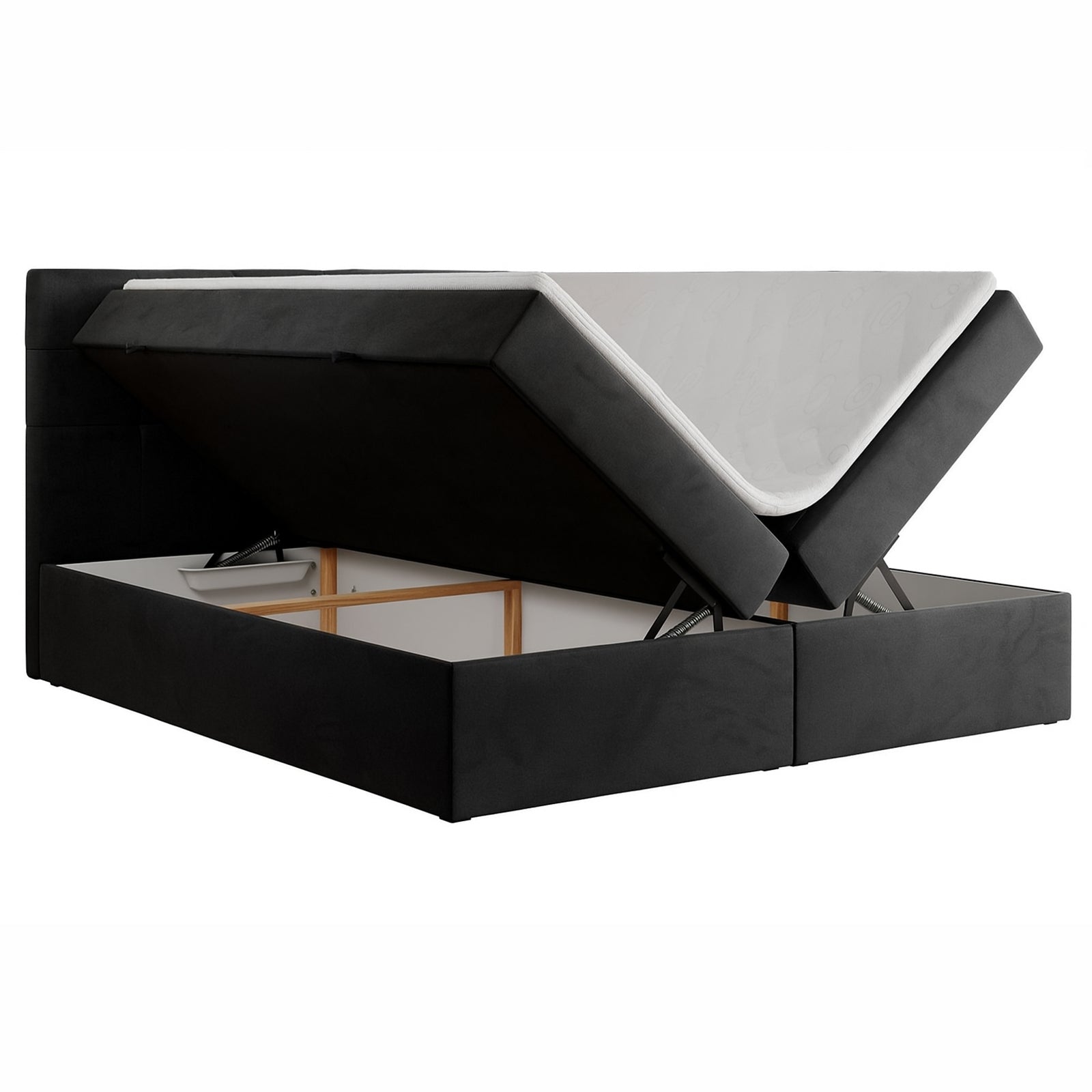 Unser hochwertiges Boxspringbett Paderborn bietet nicht nur erstklassigen Schlafkomfort, sondern auch eine clevere Stauraumlösung. Zwei großzügige Aufbewahrungsboxen unter dem Bett bieten Platz für Bettwäsche, Kissen und vieles mehr – ideal für ein aufgeräumtes Schlafzimmer.